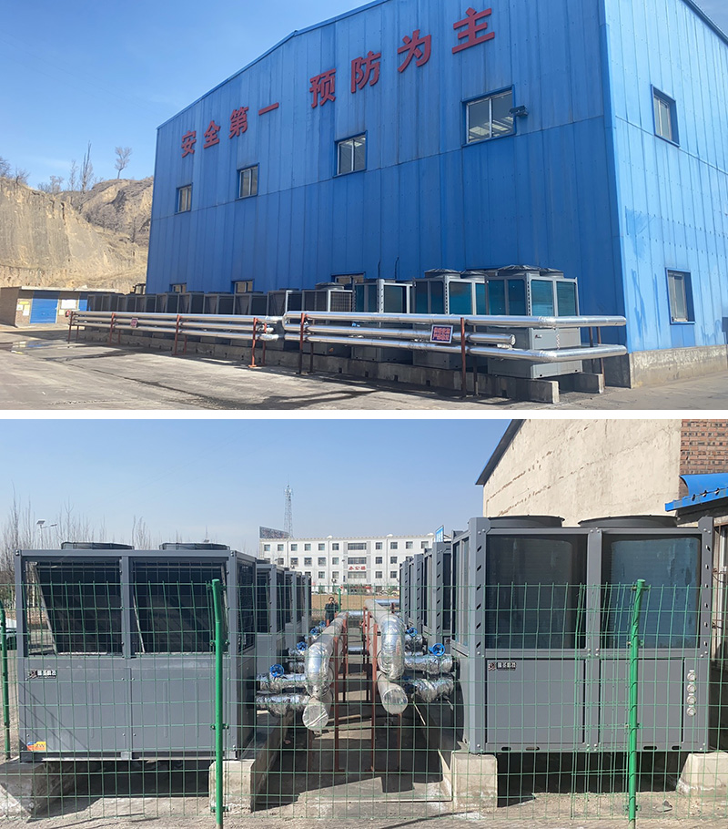 河曲桃園華川洗煤廠,供暖面積24000m2,2018年以來一直使用我公司量子能供熱機組1440KW,一年供暖期150天,電費約200萬元整,2020年冬季采用我公司7臺50P+13臺25P空氣能供熱機組(總功率540KW),一年運行費用110萬元。